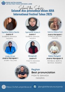 Prestasi membanggakan diraih oleh mahasiswa/i sastra inggris UIN Jambi dalam kompetisi internasional ADIA yang dilaksanakan di Surakarta Juli 2025.